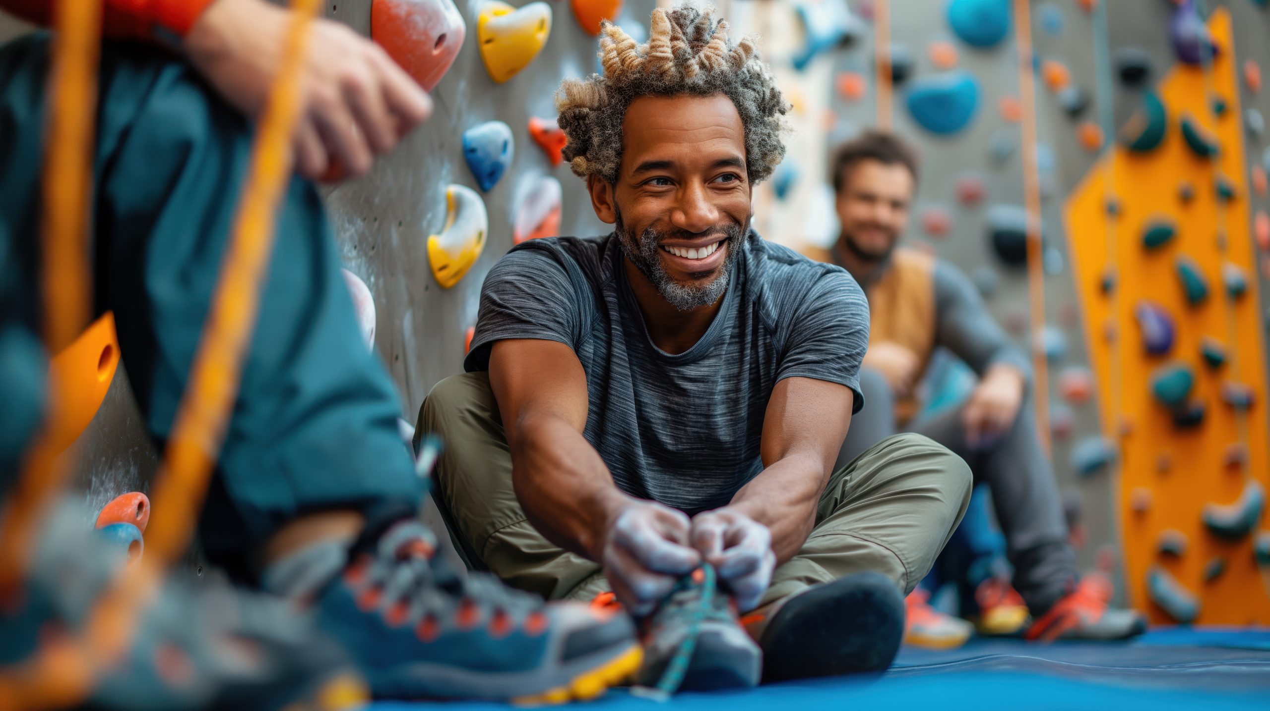 Les salles d’escalade offrent des murs d’escalade équipés de prises artificielles et de tapis de réception pour assurer la sécurité des grimpeurs.